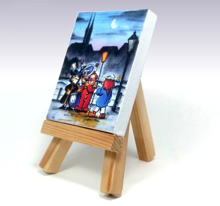 Mini-Staffelei mit einem Fasnachtshelgen.